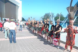 Base Jumpers were greeted at Menara Tun Mustapha by a large crowd. They were treated to a short performance by locals in their traditional dress.