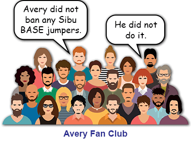 All of these factors suggest the possibility that Avery made up KL Tower’s ban of Sibu BASE jumpers himself as a reason not to invite certain people, and to fuel his own vendetta.