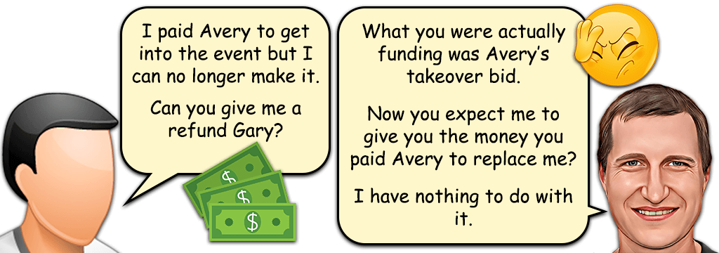 One BASE jumper actually asked me if I could refund the money he paid Avery when he could no longer make it to the event. So it was clear that some people had no understanding that what they were actually paying for was for Avery’s expenses to fly to Malaysia for a meeting to remove me from the event.