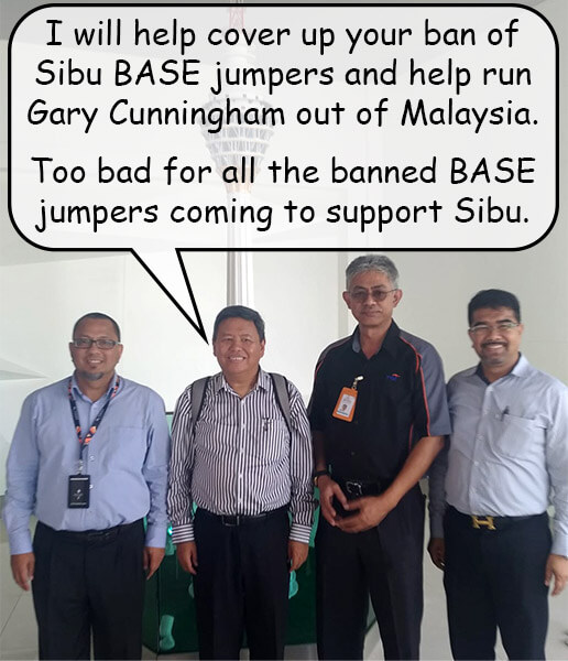 Upon seeing my promotion of KL Tower’s policy to ban Sibu BASE jump participants, the new Sibu Resident Charles Siaw travelled to KL Tower to have a meeting with the new KL Tower CEO and other managers. Being new to his position, Sibu Resident Charles Siaw had no prior experience with BASE jumping events. I had never met or communicated with him before.